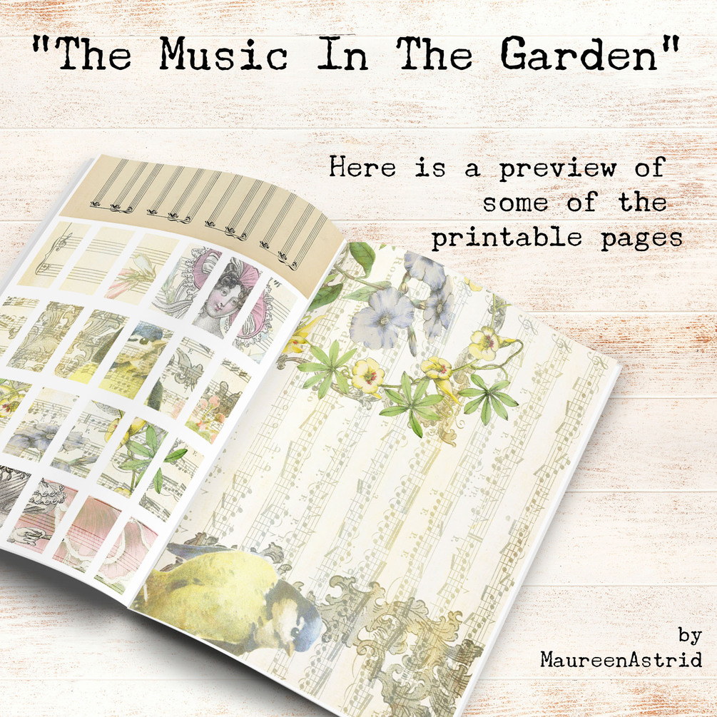 A beautiful bundle of papers with a garden and music-theme. The colors are bright, it has a fresh and airy vibe. Of course it all has a vintage feel.