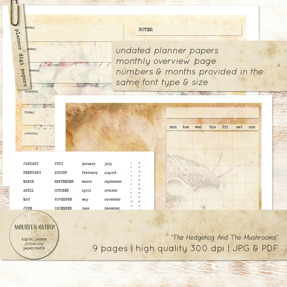 The Hedgehog And The Mushrooms | Autumn Journal & Planner bundle