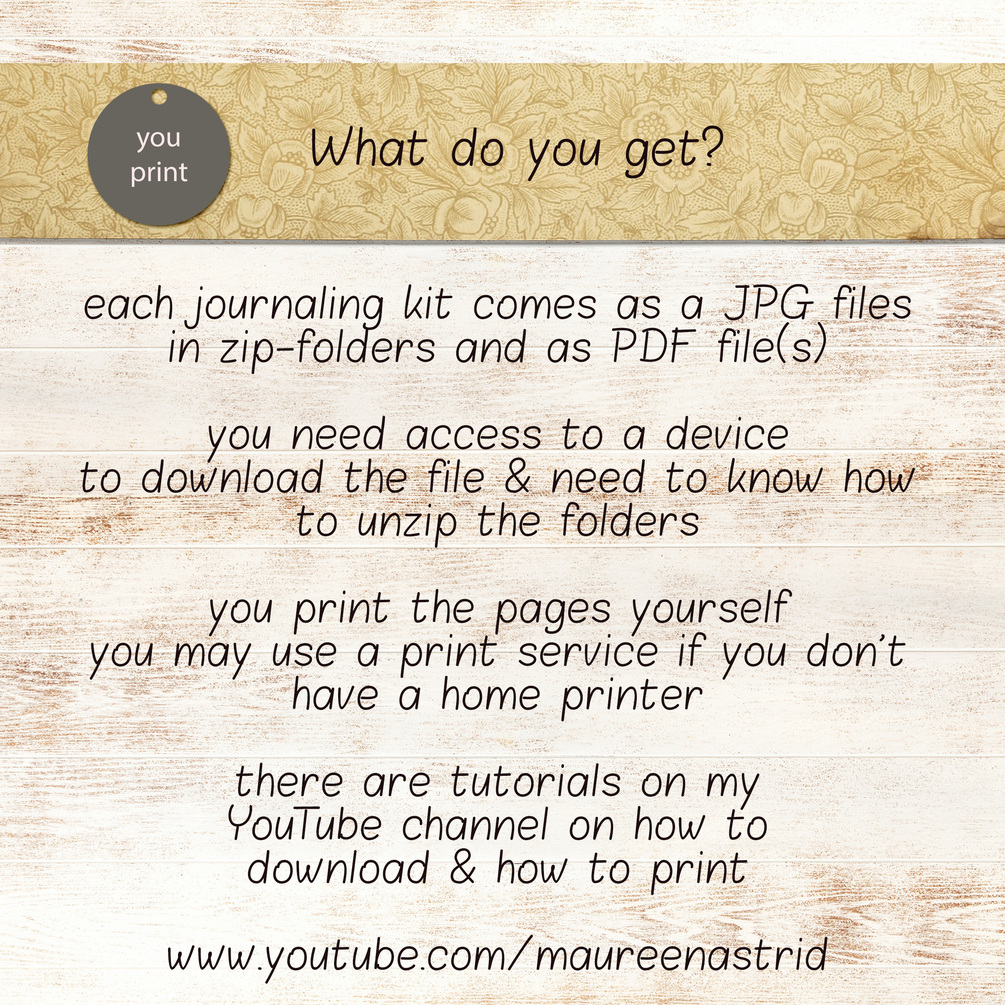 You download the ZIP file(s) and PDF file(s), after your purchase. You need to extract the files to your device. Then you can print the papers yourself. Print as many copies as you like. Use them in personal projects, or physical items to sell. A full TOU - Terms of Use is included in the zip file.