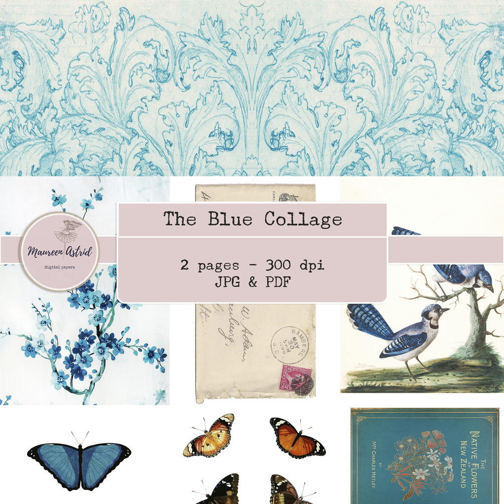 A small bundle with two gorgeous sheets for collaging, in pretty blues. It will combine lovely with my other kits: